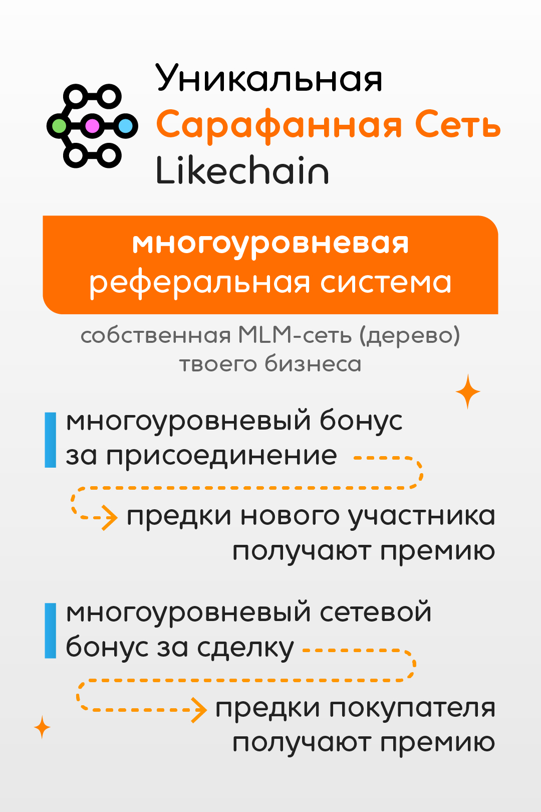 Каждый селлер Likechain управляет собственной, независимой сарафанной сетью.