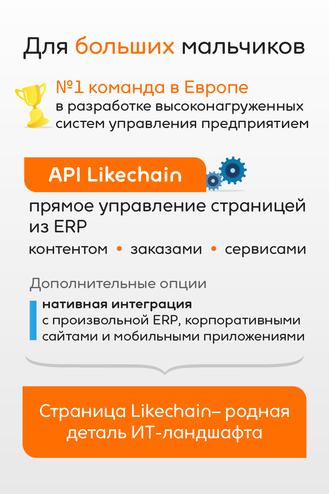 С отдельным интернет-магазином, доской объявлений (лендингов), собственной программой лояльности и т.д.