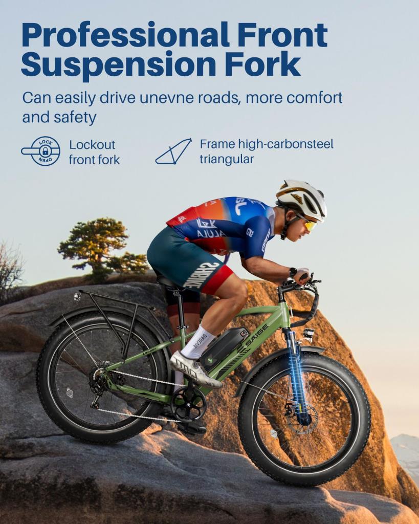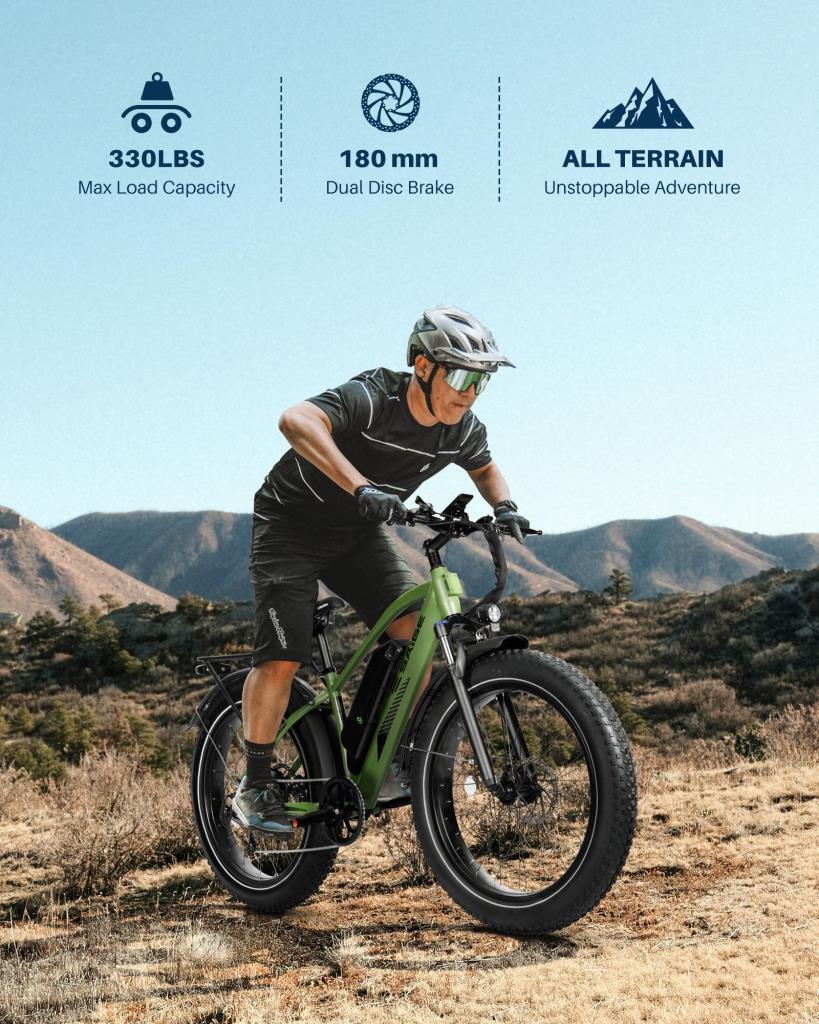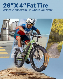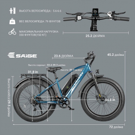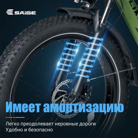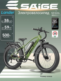 Электровелосипед для взрослых SAIGE Lander 500W 38 км/ч Батарея 13Ah Запас хода 59 км Колеса 26" Дисковые тормоза, Зеленый
