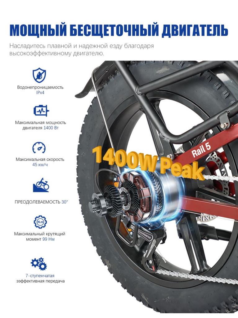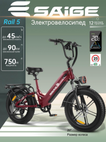 Электровелосипед SAIGE Rail 5, новейшая скоростная модель, водительские права не требуются, максимальная скорость: 45 км/ч, зимние шины 20*4.0