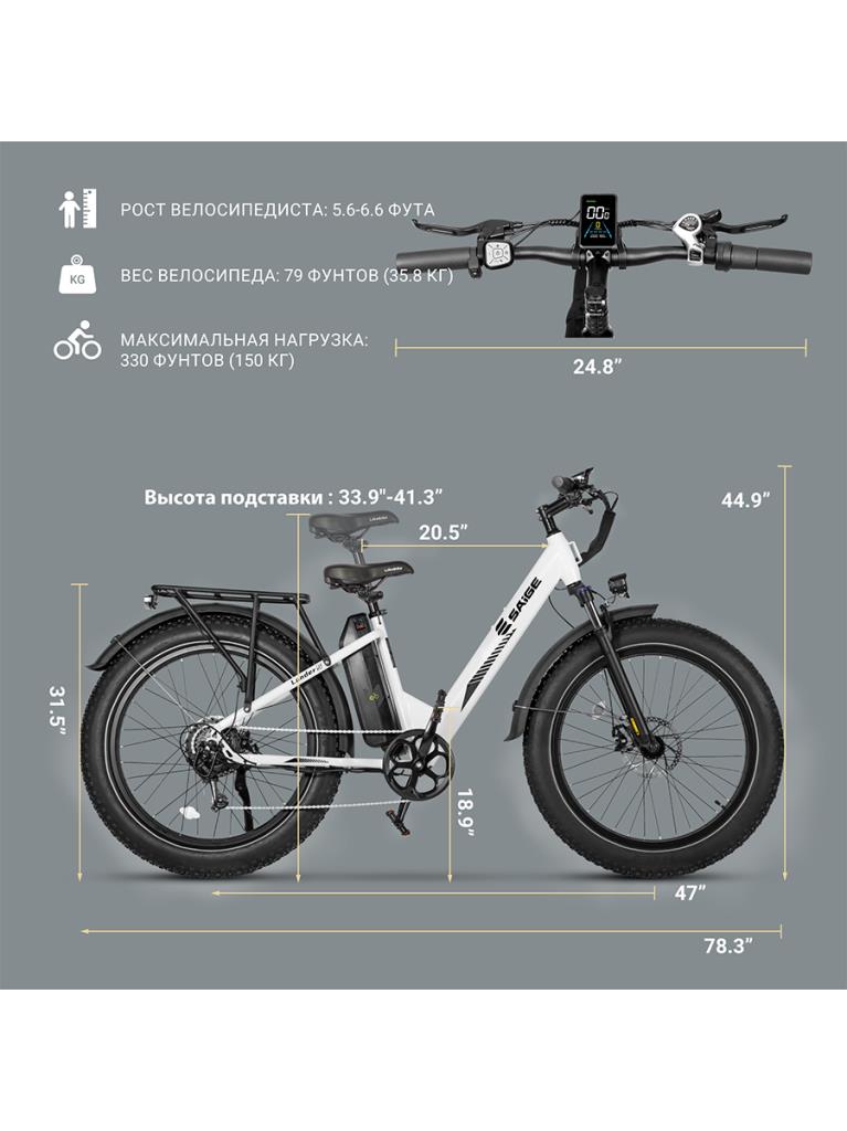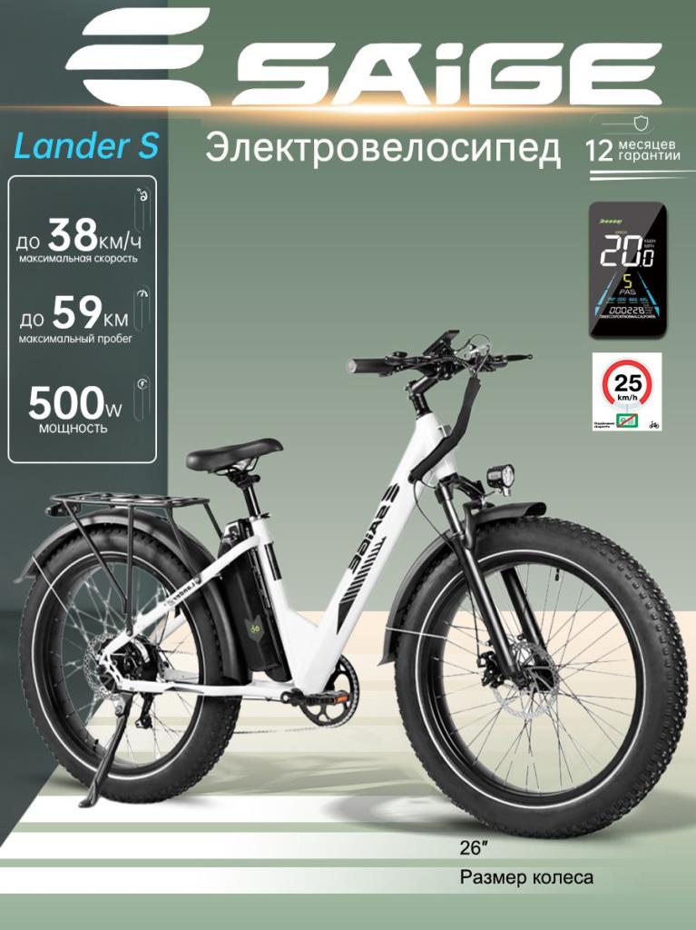 SAIGE Lander S Электрический Велосипед 500W 48V 13Ah До 59 км, Городской/Туристический LCD-Дисплей Гарантия 1 Года