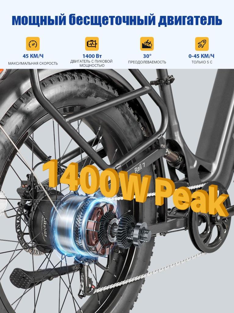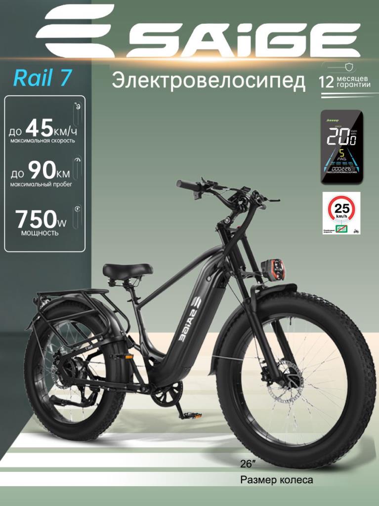 SAIGE Rail 7 Электрический велосипед 2025, 750 Вт,Супермотор,Батарея большой емкости,Степень защиты: IP54