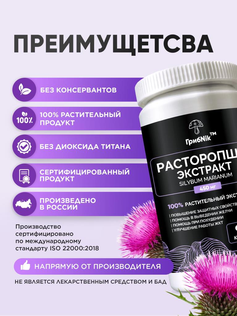 Расторопша в капсулах экстракт для защиты печени 90 капсул, ГрибNik