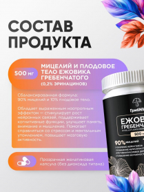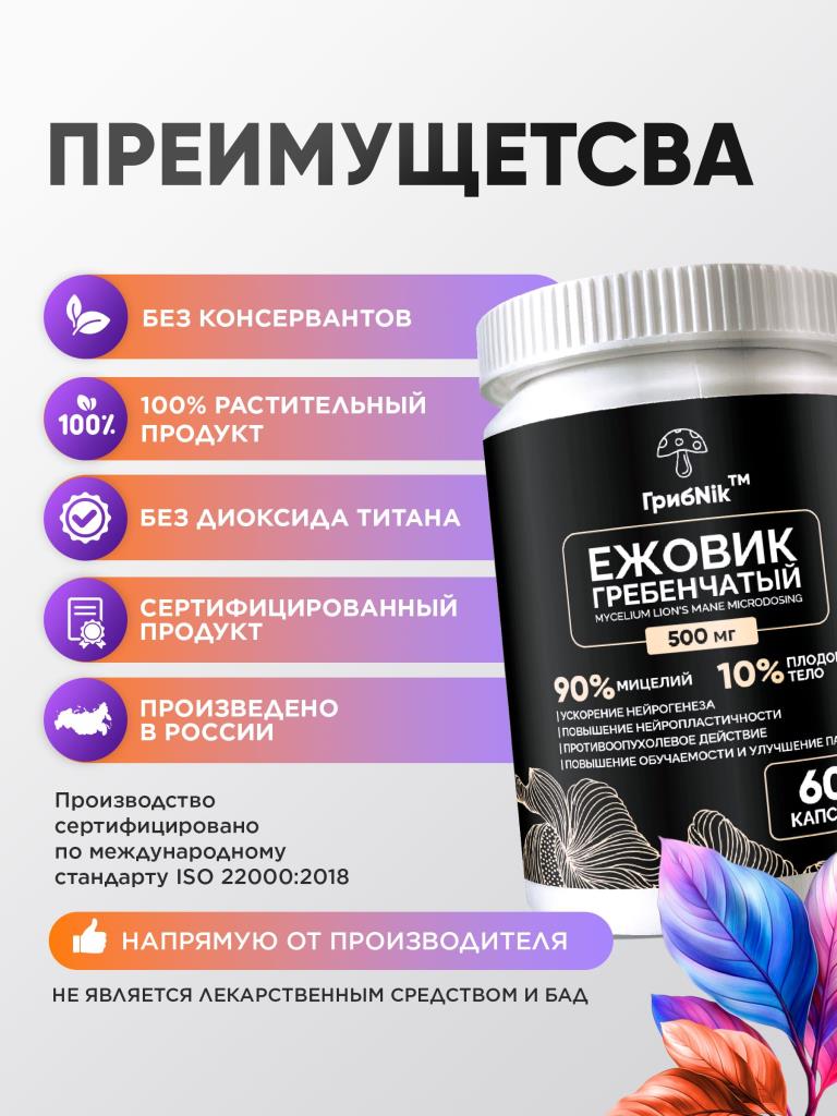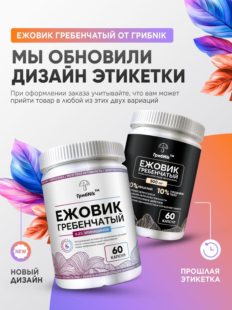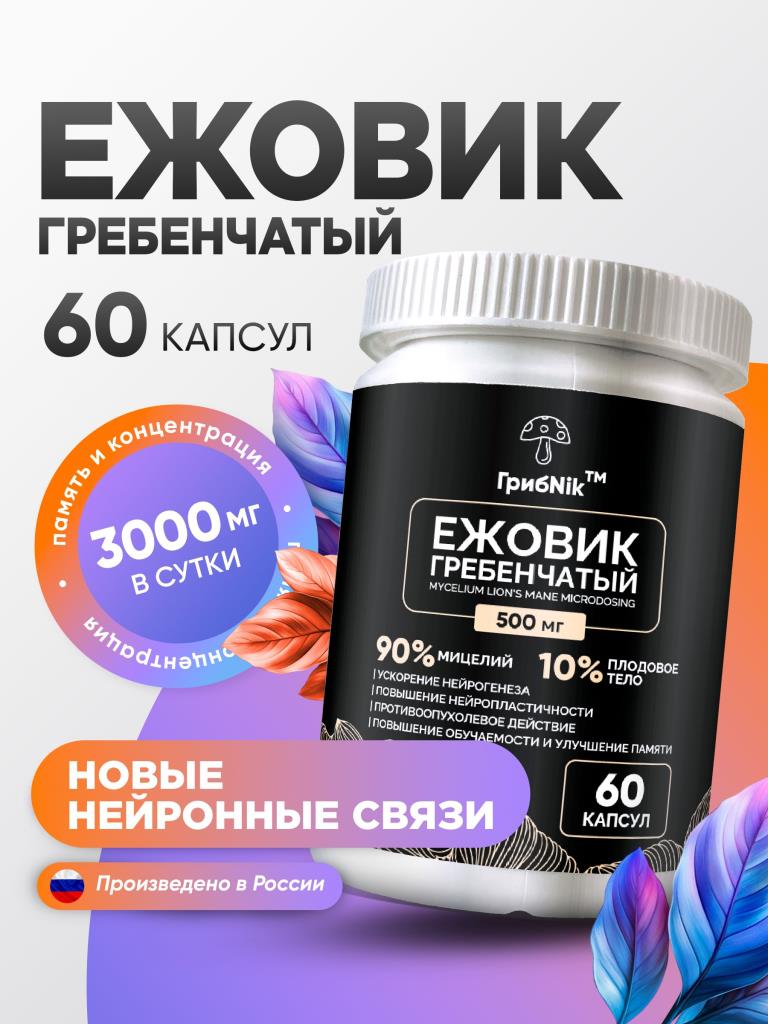 Ежовик гребенчатый капсулы ежевик 60 капсул 500 мг, ГрибNik