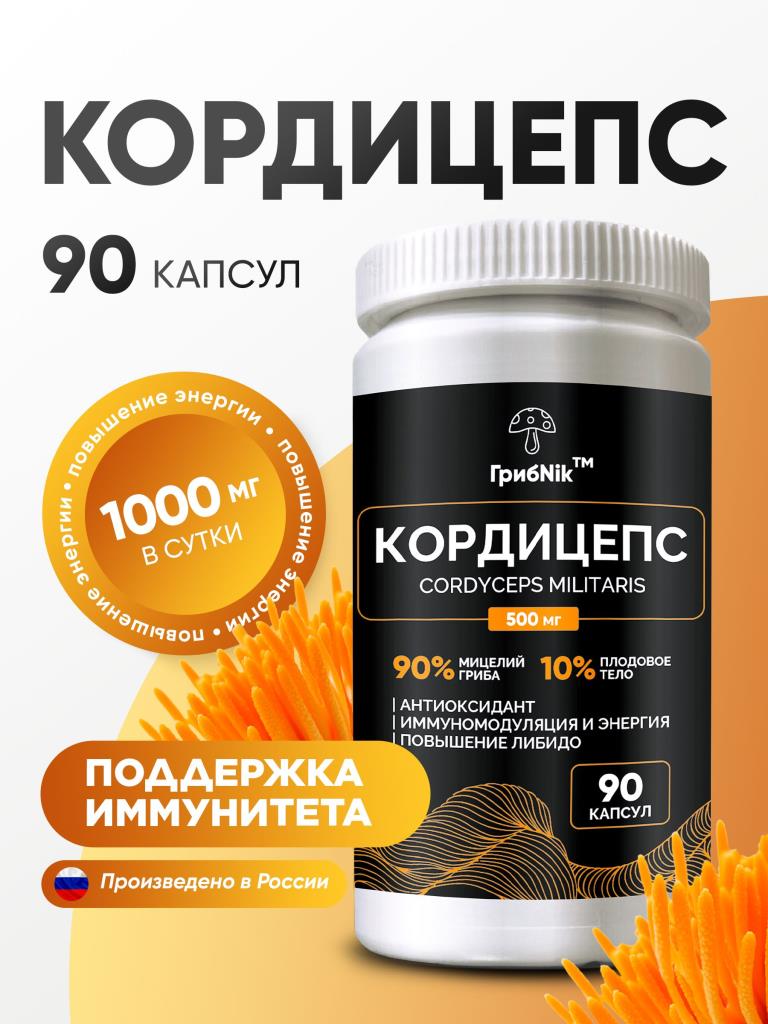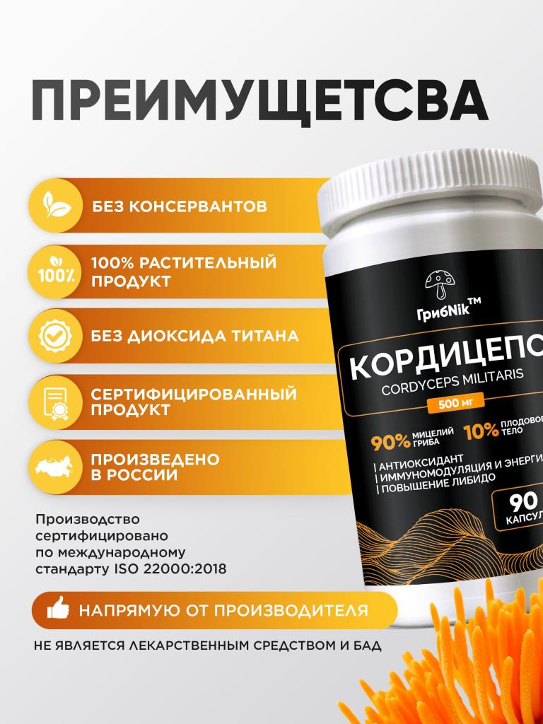 Кордицепс военный (Cordyceps militaris) для либидо, энергии, иммунитета 90 капсул 500 мг, ГрибNik