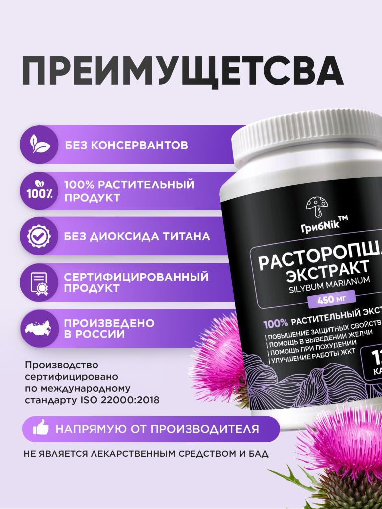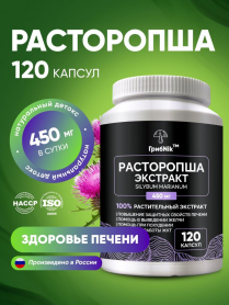 Расторопша в капсулах экстракт для защиты печени 120 капсул 450 мг, ГрибNik