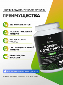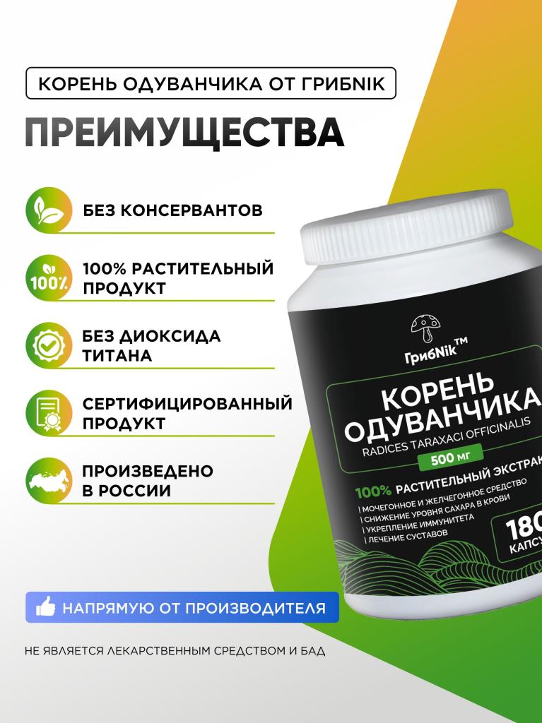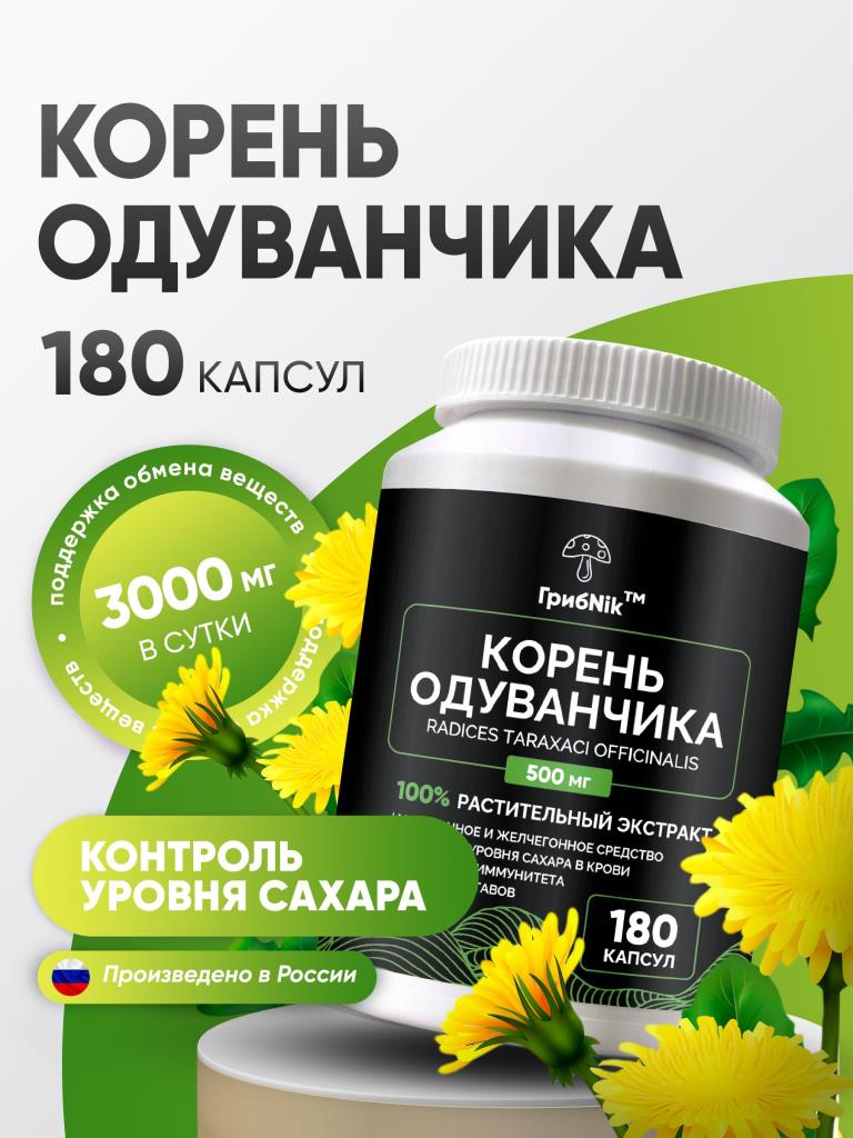 Корень одуванчика от отеков, очищение организма, детокс, для суставов, противовоспалительное, от псориаза 180 капсул 500 мг, ГрибNik