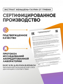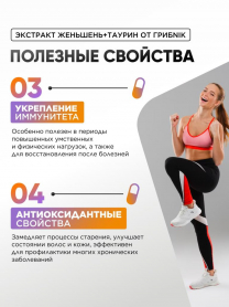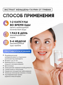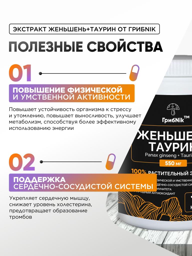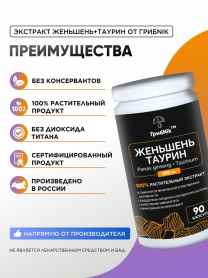 Женьшень таурин экстракт в капсулах 90 капсул 550 мг, ГрибNik