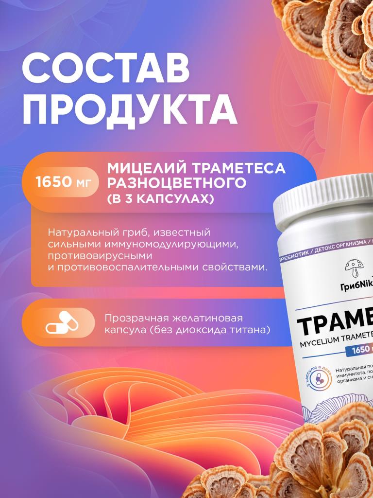 Траметес разноцветный мицелий 90 капсул, ГрибNik