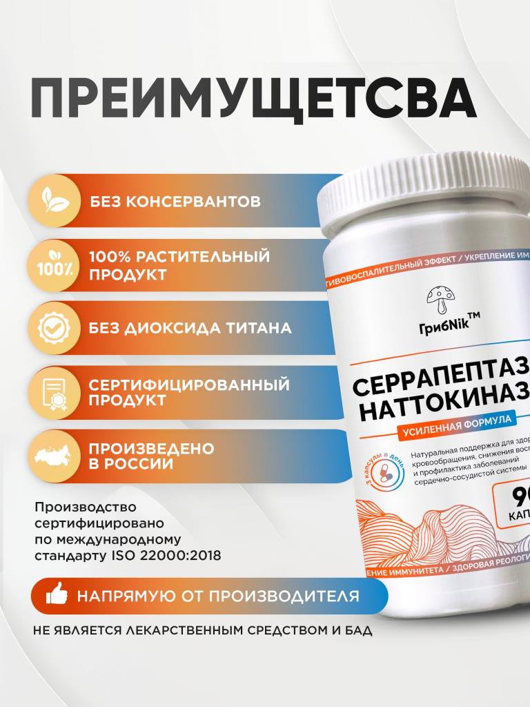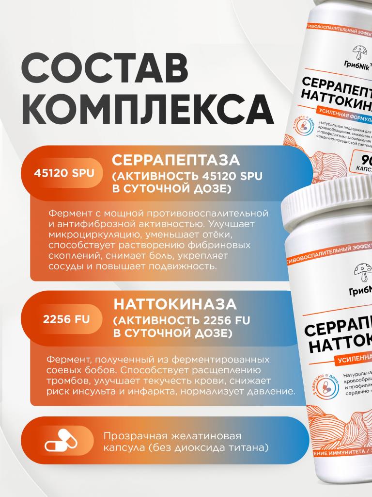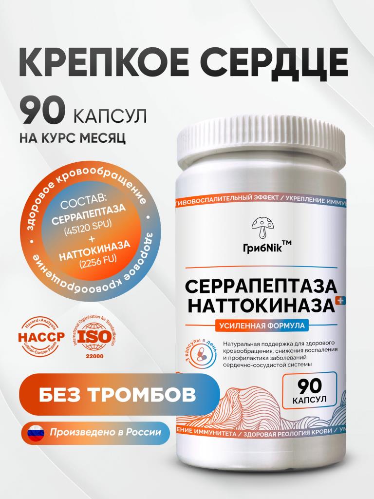 Серрапептаза + Наттокиназа 90 капсул, ГрибNik