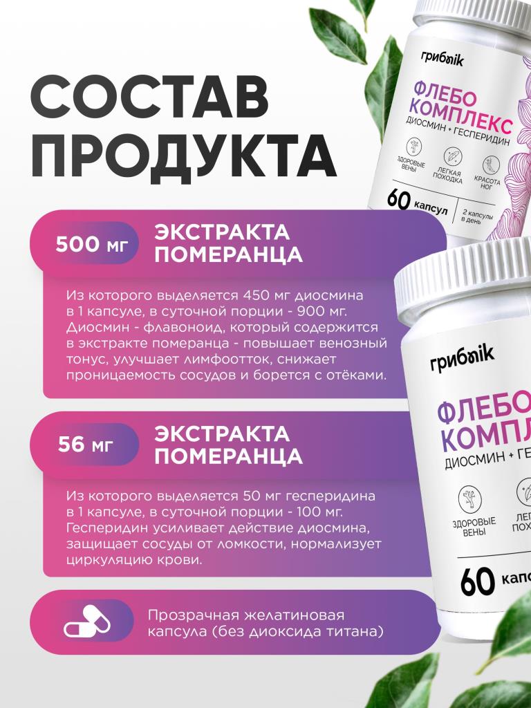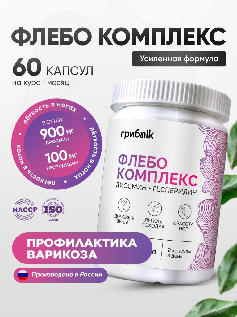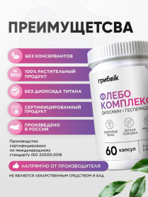 Флебо комплекс / Диосмин + Геспередин 60 капсул, ГрибNik