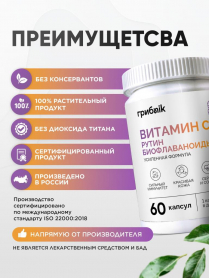 Рутин + Витамин C + Биофлавоноиды 60 капсул, ГрибNik