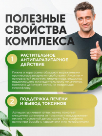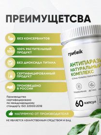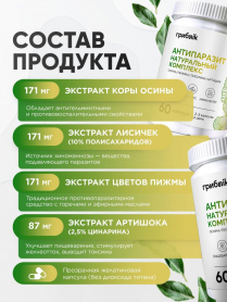 Антипаразитарный комплекс для взрослых / Антипаразит натуральный комплекс / Пижма, осина, артишок, лисички 60 капсул, ГрибNik
