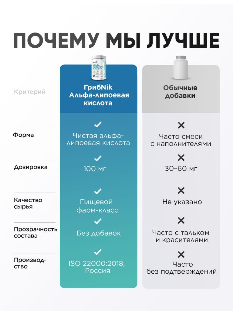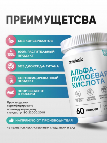 Альфа липоевая кислота 60 капсул, ГрибNik
