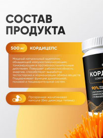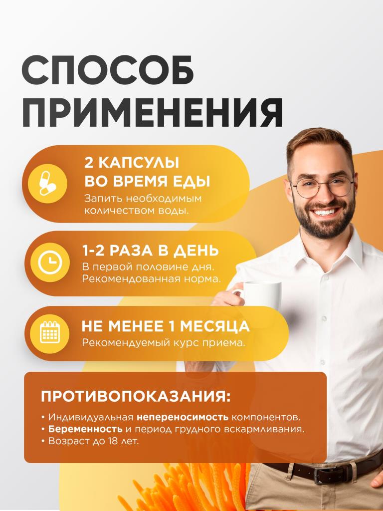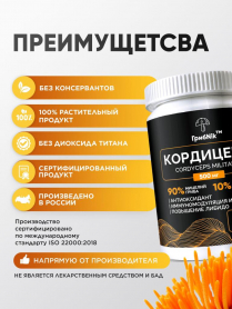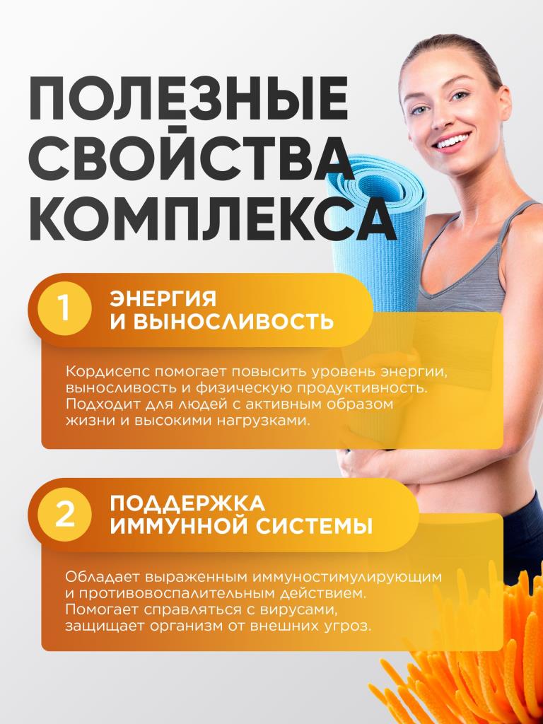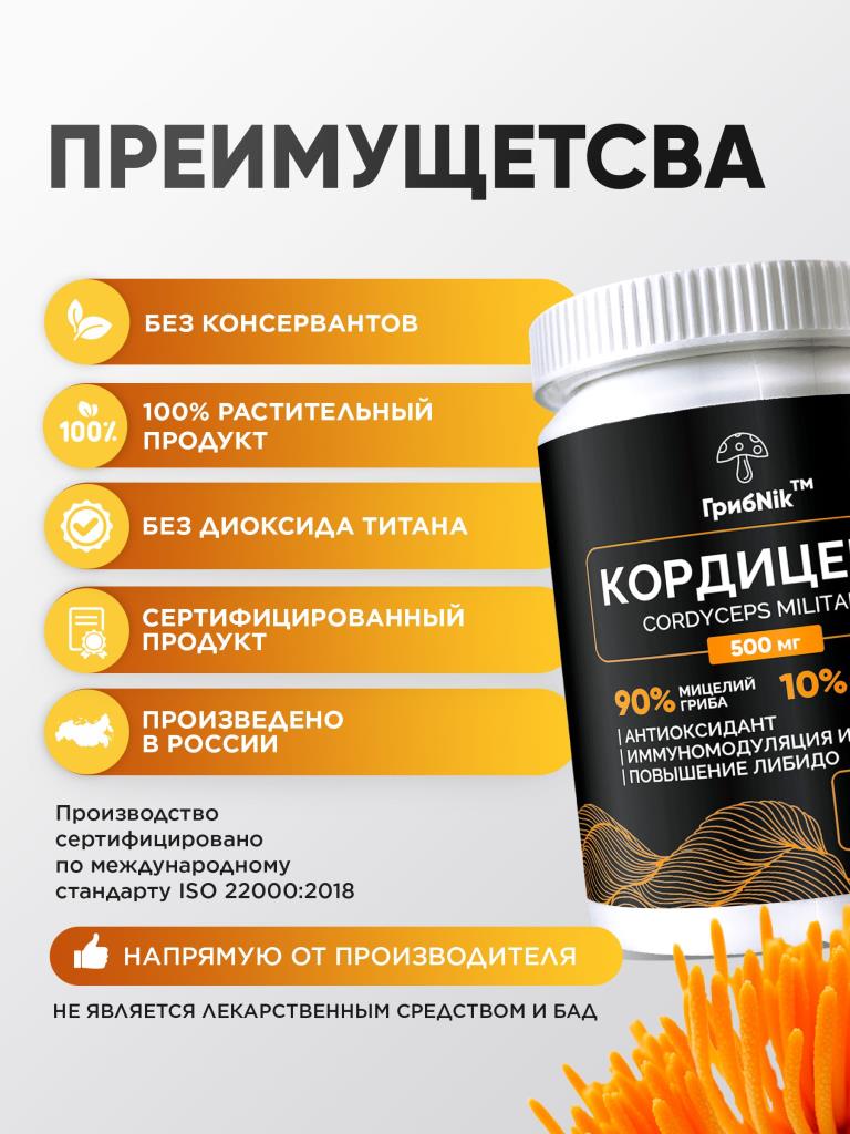 Кордицепс военный (Cordyceps militaris) для либидо, энергии, иммунитета 60 капсул 500 мг, ГрибNik