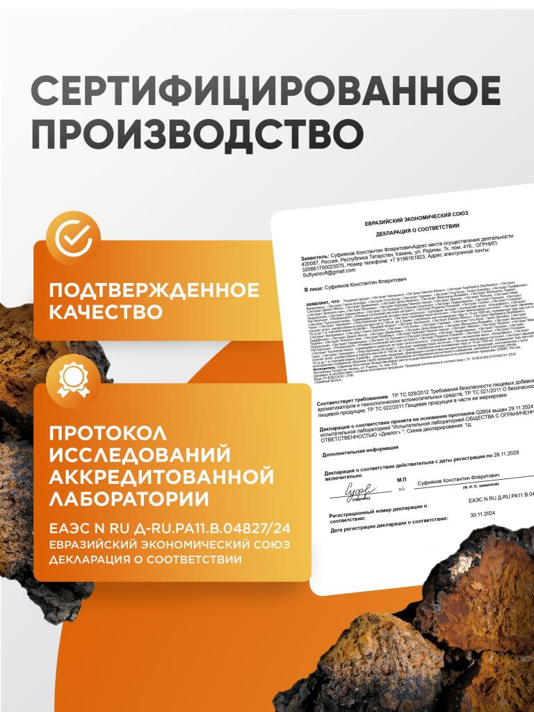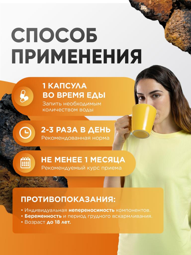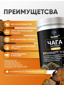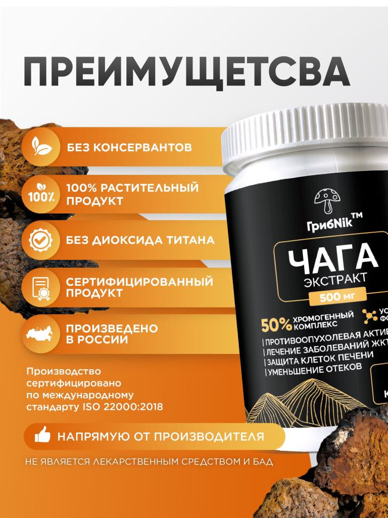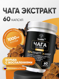 Чага экстракт 60 капсул 500 мг, для ЖКТ, кишечника и детокса, ГрибNik