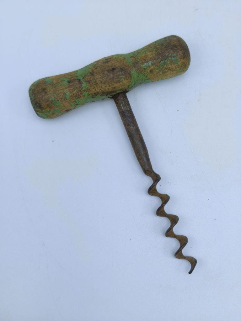 Спираль штопора выполнена из крепкого металла, который легко справляется с извлечением пробки любой плотности. Её винтовая конструкция позволяет пробке оставаться целой, избегая повреждений. Металлическая часть штопора покрыта налётом времени, говоря об истории, которой этот предмет обладает. Прочность конструкции гарантирует, что аксессуар сможет использоваться как функциональный инструмент, несмотря на его антикварный возраст.