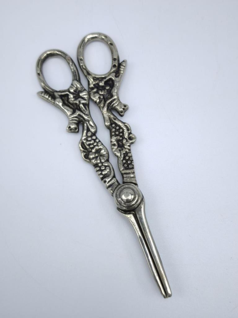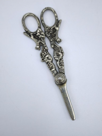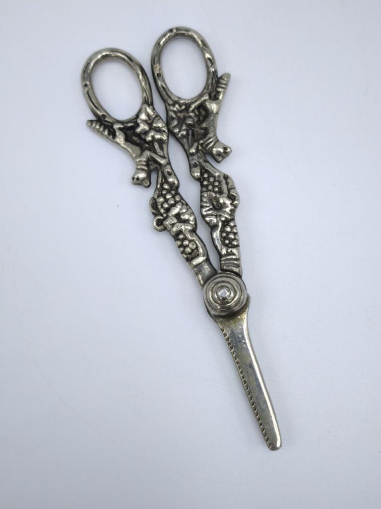 Эти винтажные ножницы предназначены для аккуратного обрезания виноградных гроздьев. Серебрение обеспечивает долговечность и уникальную эстетику, а ручки эргономичной формы упрощают процесс сбора урожая.