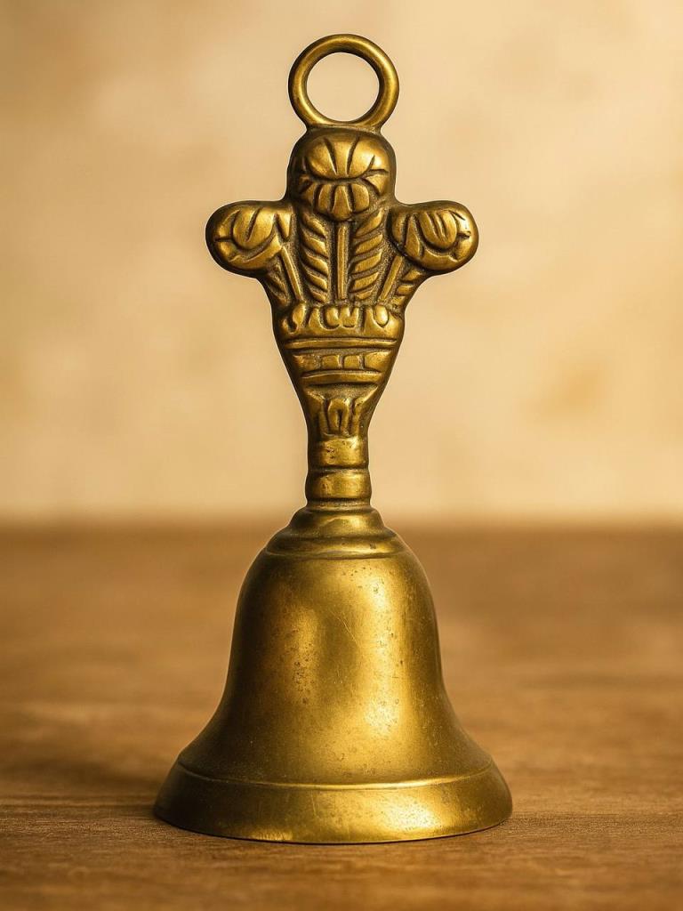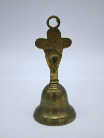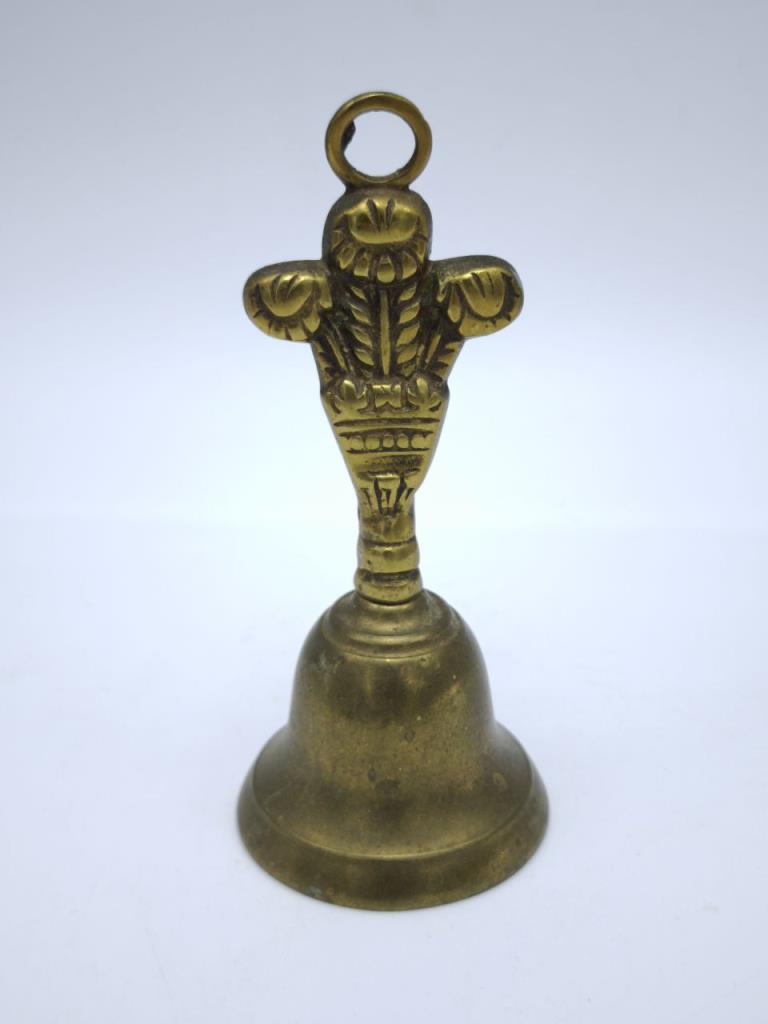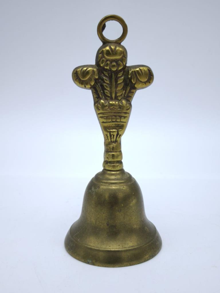 Старинный латунный колокольчик украшенный декоративными элементами