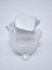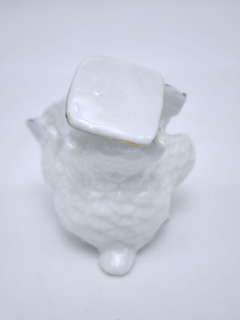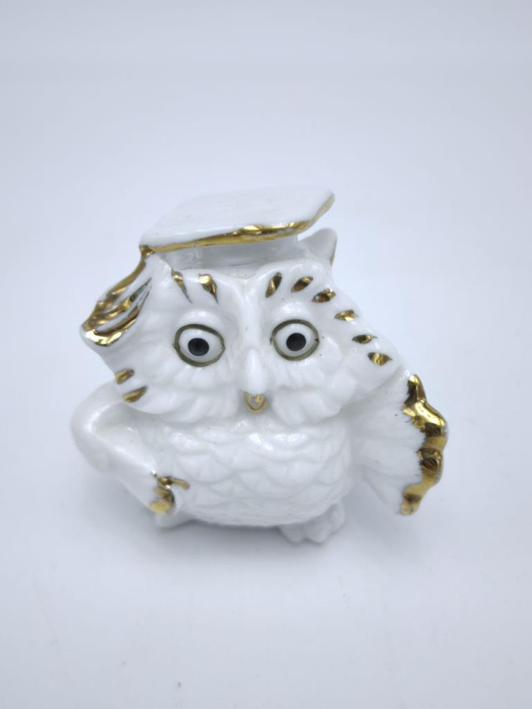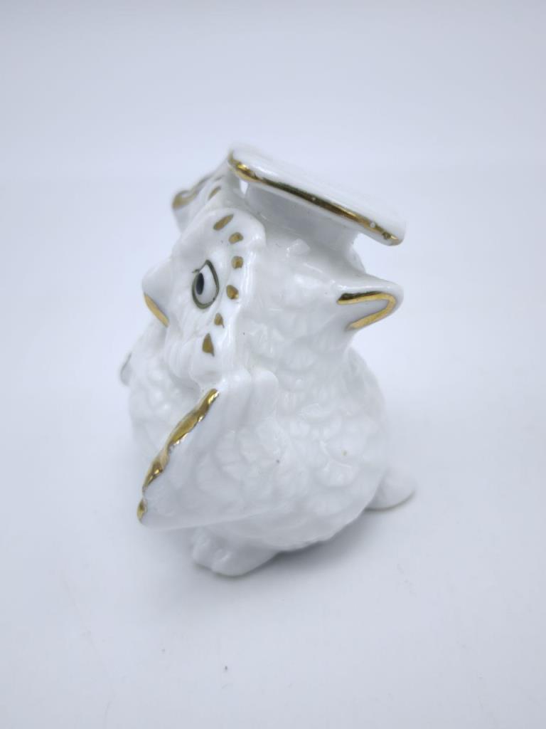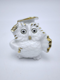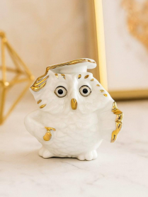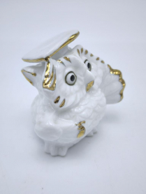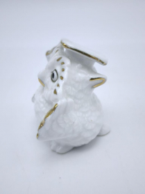 Эта изысканная фарфоровая фигурка выполнена в форме совы, символа мудрости и утонченности. Белый глянцевый фарфор украшен элегантными золотыми акцентами, придающими предмету роскошный вид.