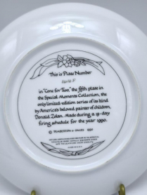 Фарфоровая тарелка в технике деколь — это больше, чем просто элемент декора. Она представляет собой уникальное сочетание художественного мастерства и качественного исполнения. Тарелка вдохновлена работой знаменитого художника Дональда Золана и является частью лимитированной коллекции Special Moments Collection. Это идеальный выбор для тех, кто стремится украсить свой интерьер редкими и эстетичными предметами, наполненными теплотой и историей.