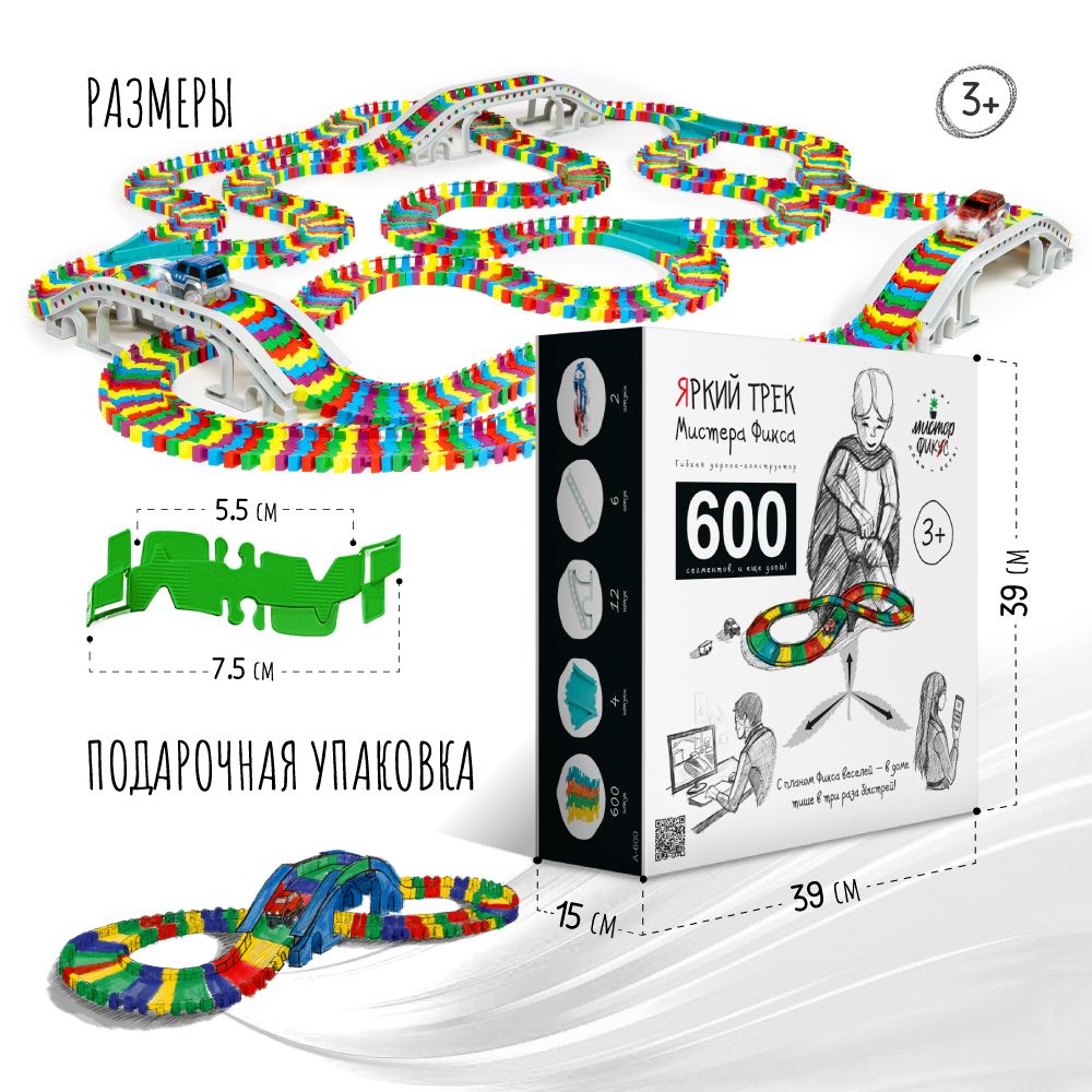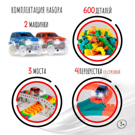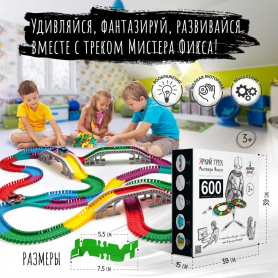 Автотрек с машинками, гибкий гоночный трек 600 деталей