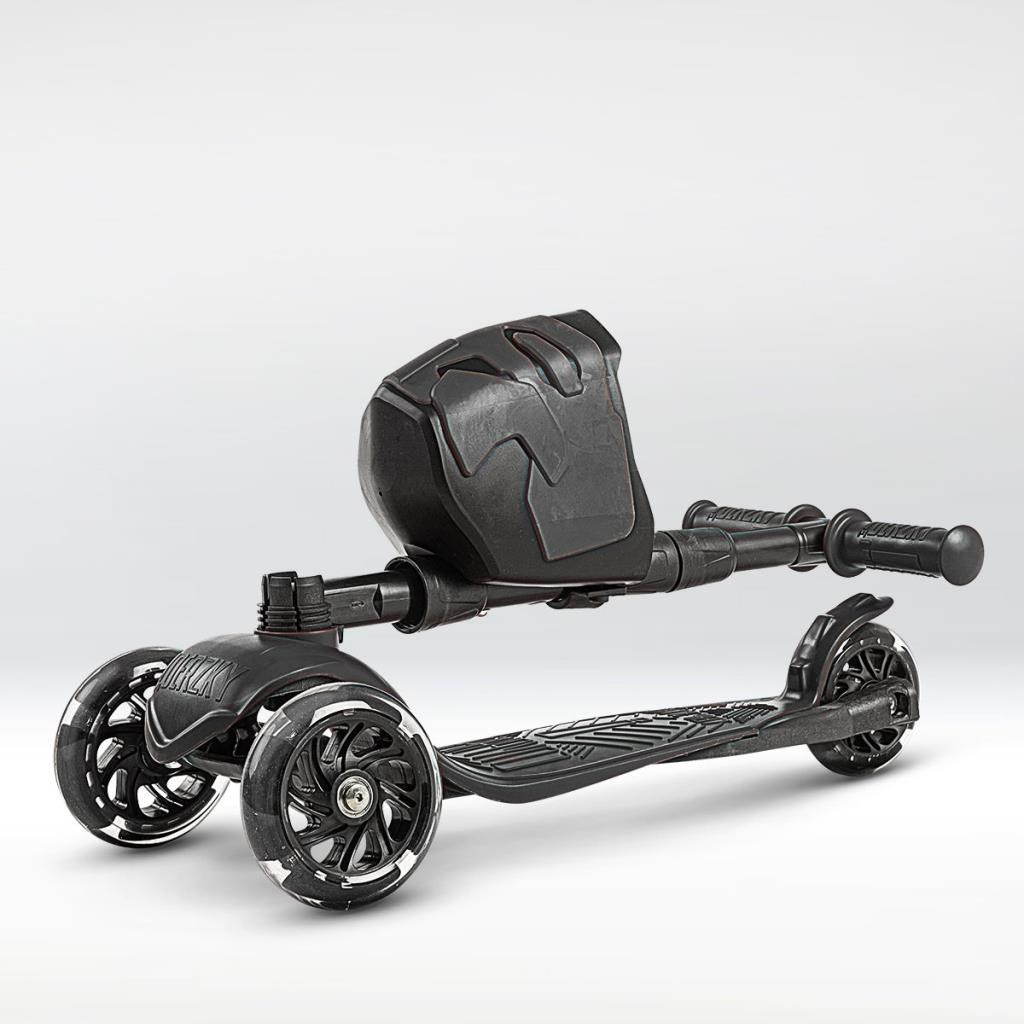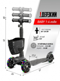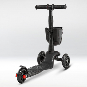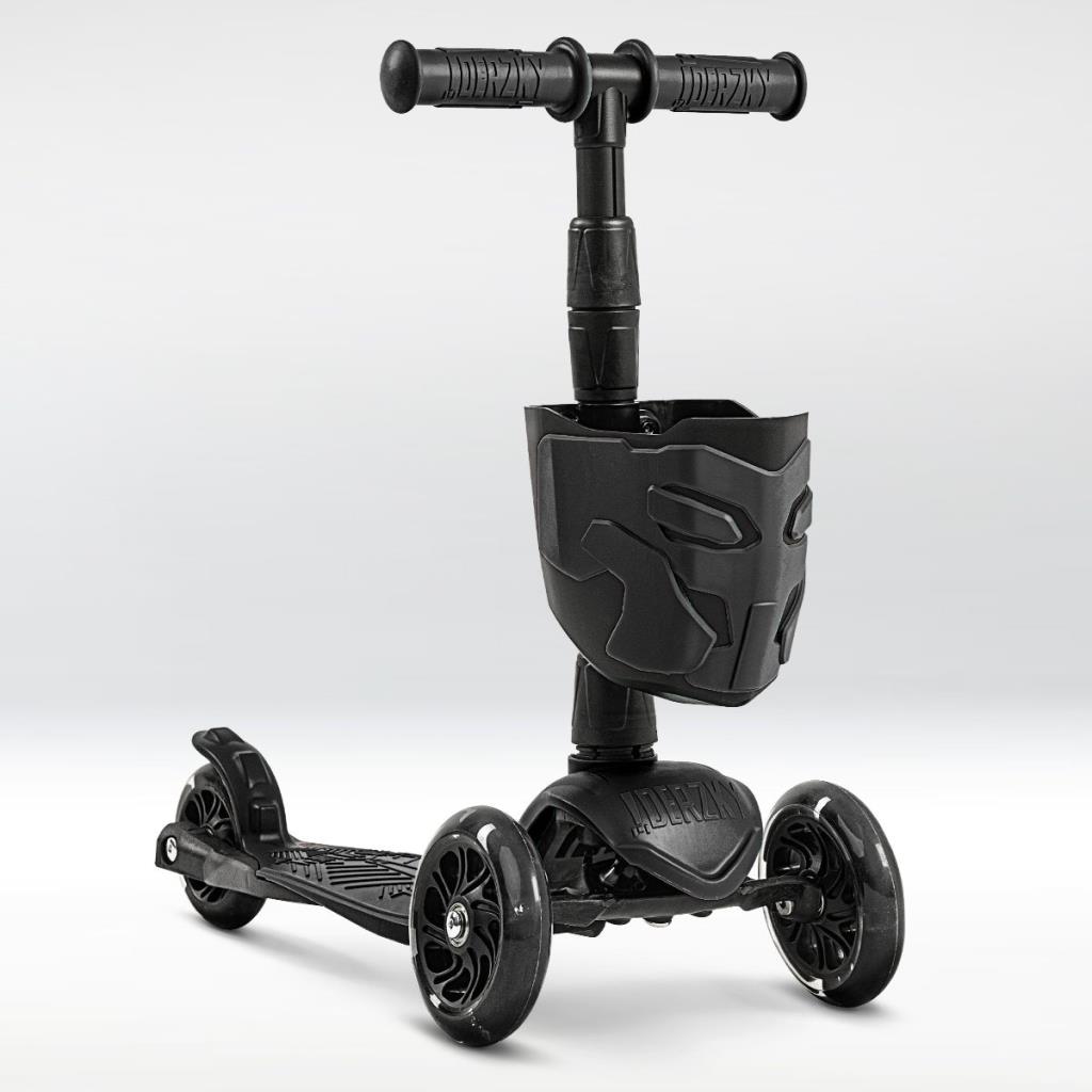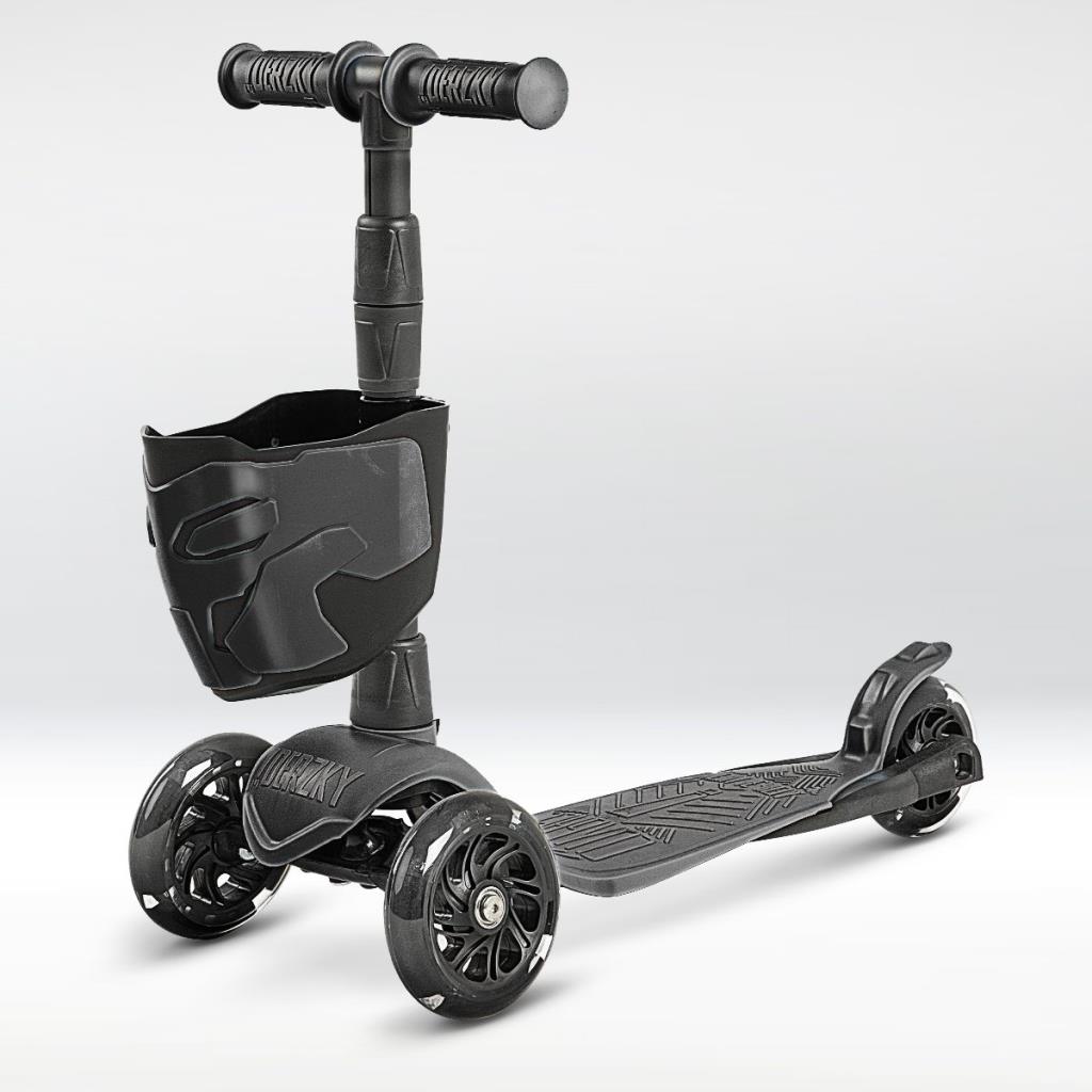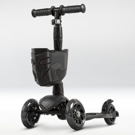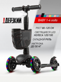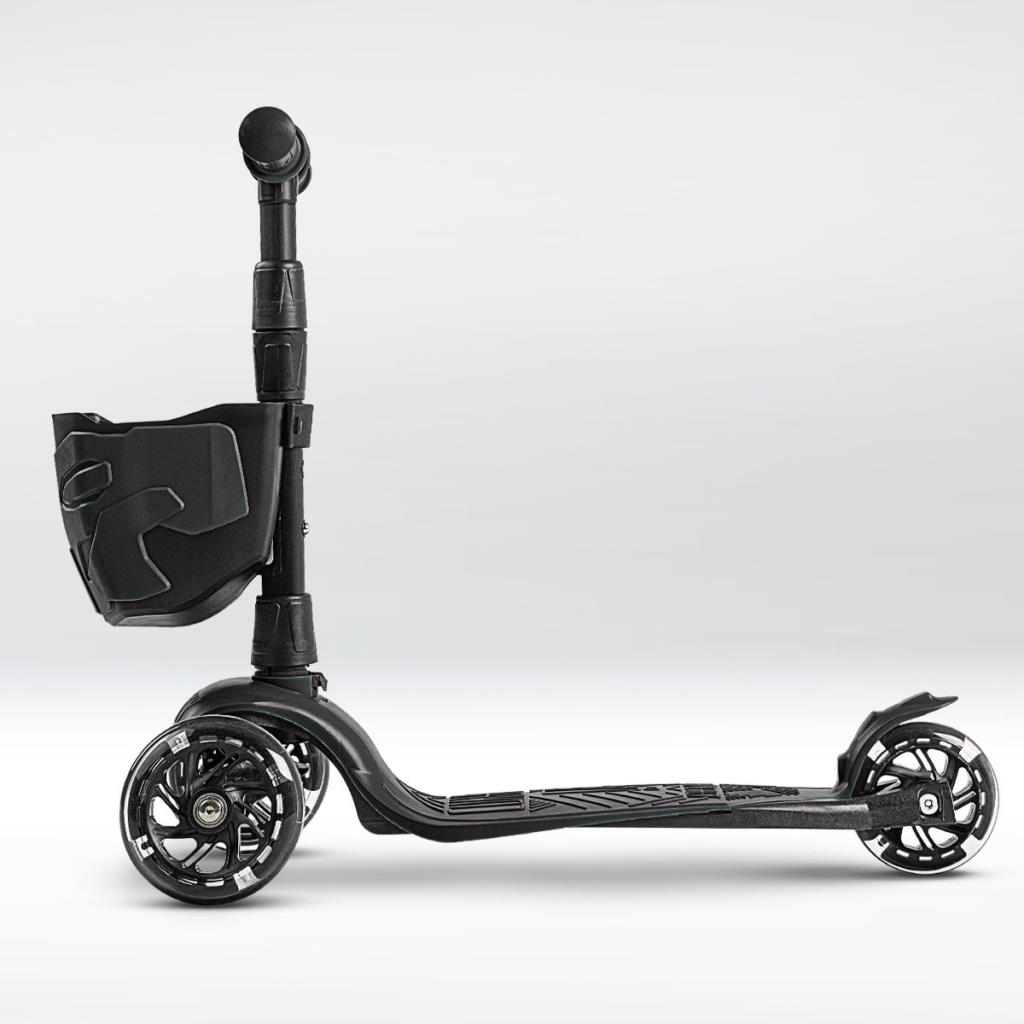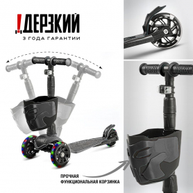 !Дерзкий Самокат трехколесный детский, светящиеся колеса с корзинкой и фонариком., черный