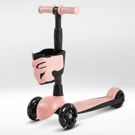 !Дерзкий Самокат трехколесный детский, светящиеся колеса с корзинкой и фонариком., светло-розовый