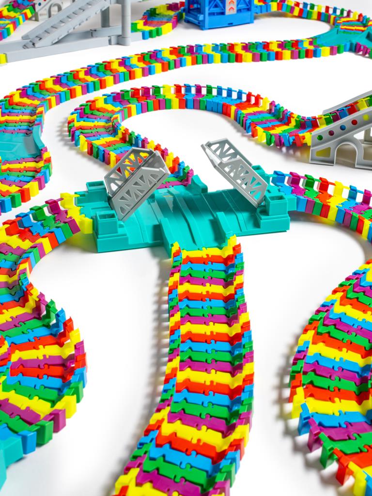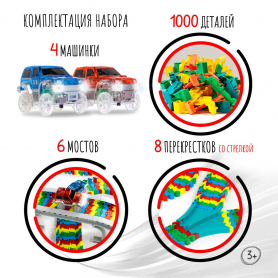 Автотрек с машинками, гибкий гоночный трек 1000 деталей, Яркий трек Мистера Фикса