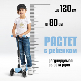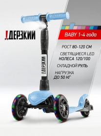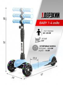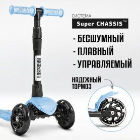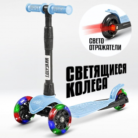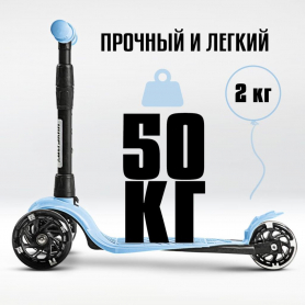 !Дерзкий Самокат трехколесный детский Стайл с фонариком 1-4 года со светящимися колесами, голубой