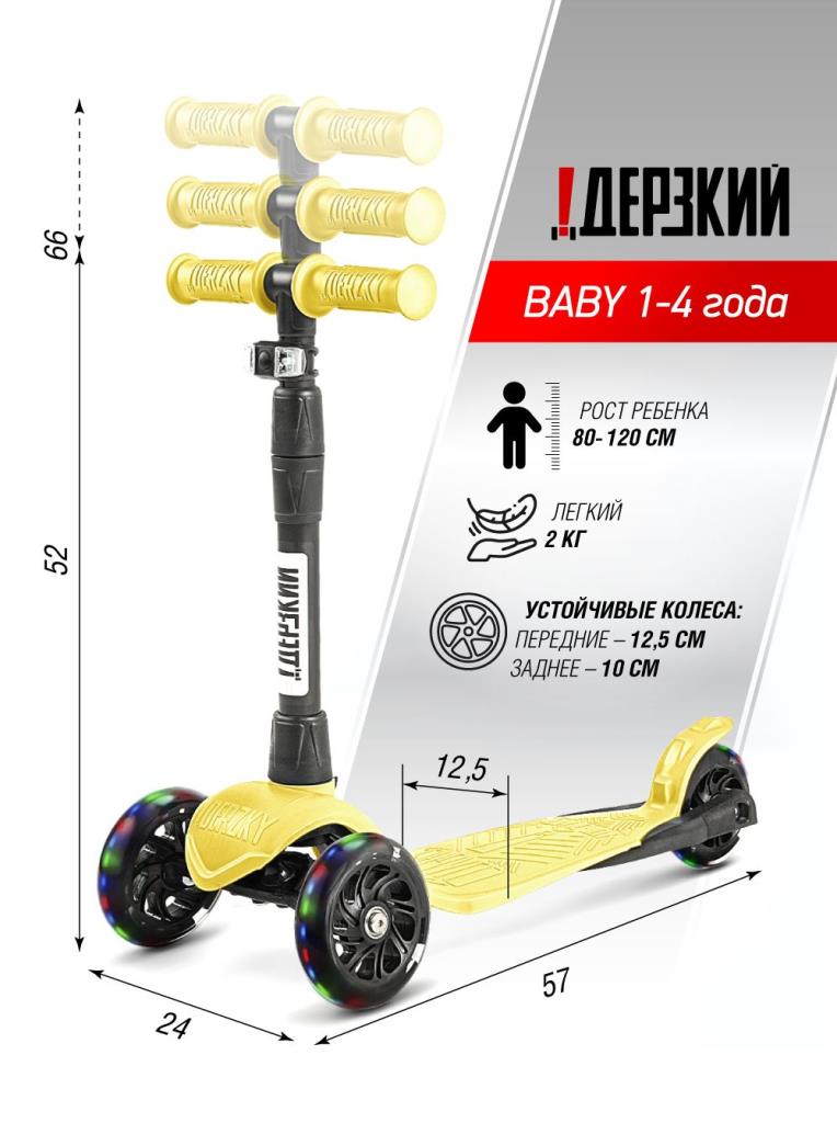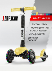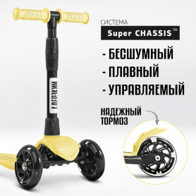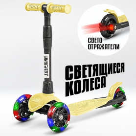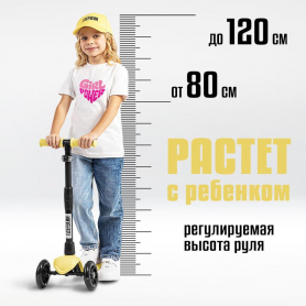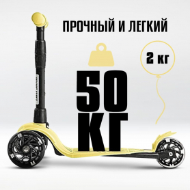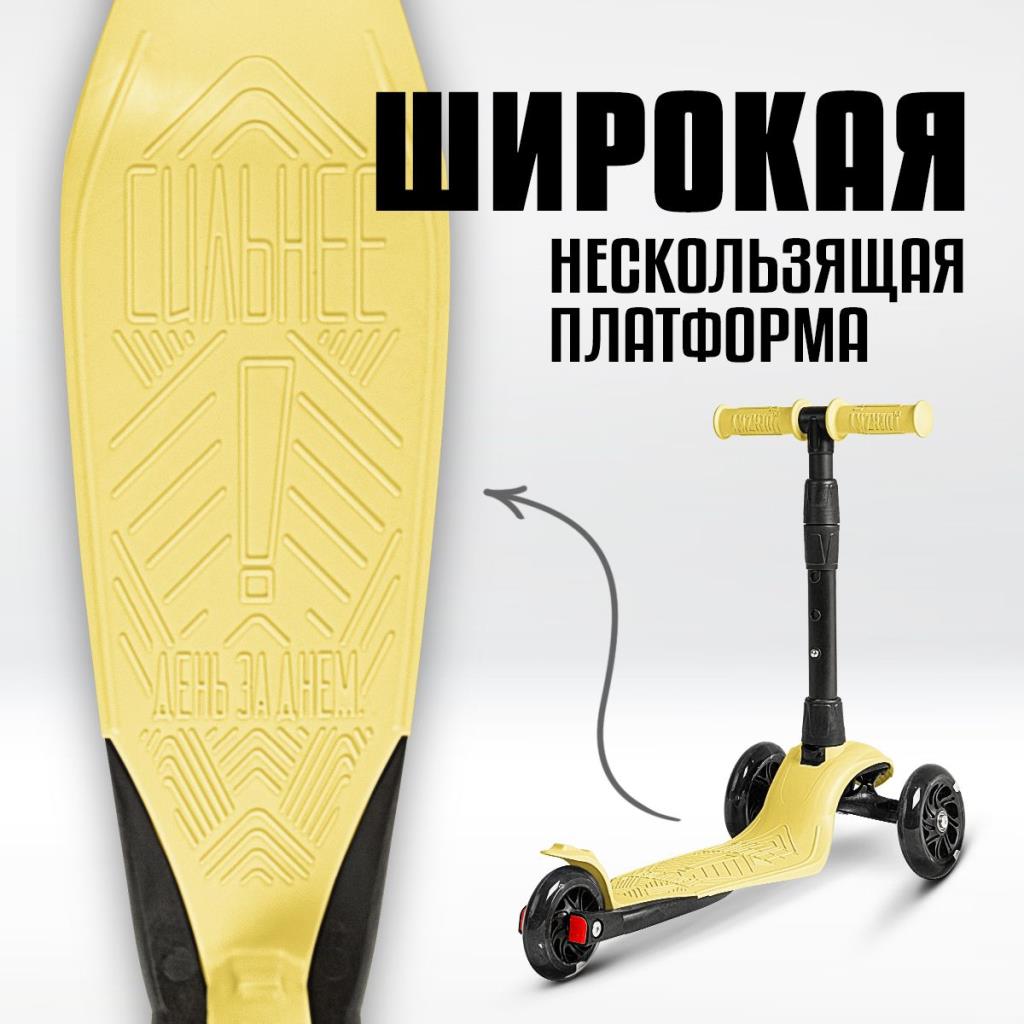 !Дерзкий Самокат трехколесный детский Стайл с фонариком 1-4 года со светящимися колесами, желтый