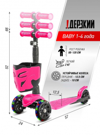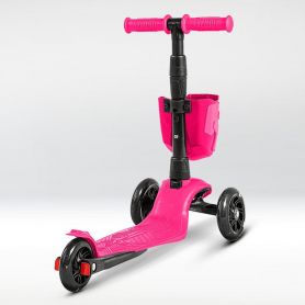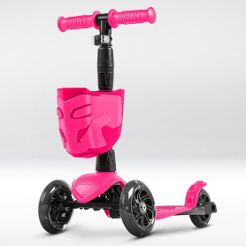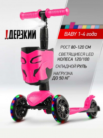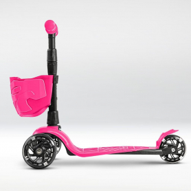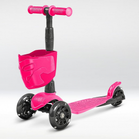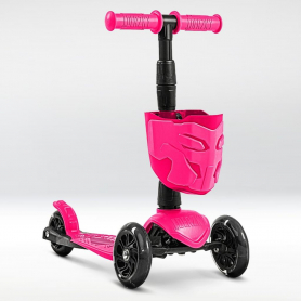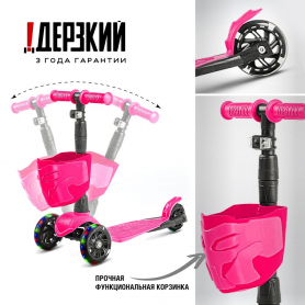 !Дерзкий Самокат трехколесный детский, светящиеся колеса с корзинкой и фонариком., розовый
