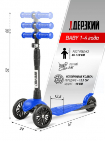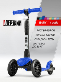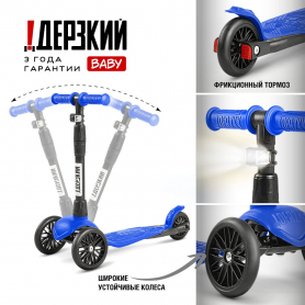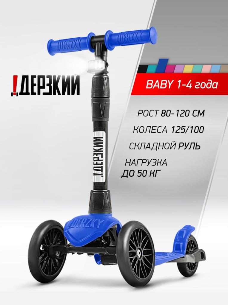 !Дерзкий Самокат детский трехколесный BABY Старт с фонариком 1-4 года, синий