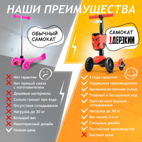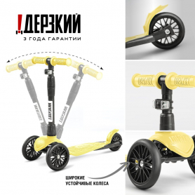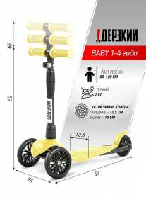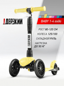 !Дерзкий Самокат детский трехколесный BABY Старт с фонариком 1-4 года, светло-желтый