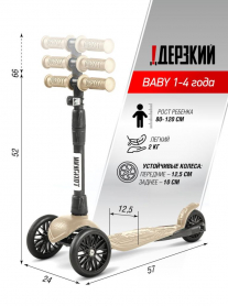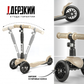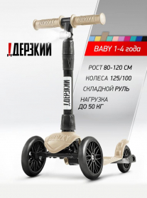 !Дерзкий Самокат детский трехколесный BABY Старт с фонариком 1-4 года, светло-бежевый