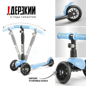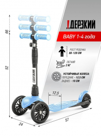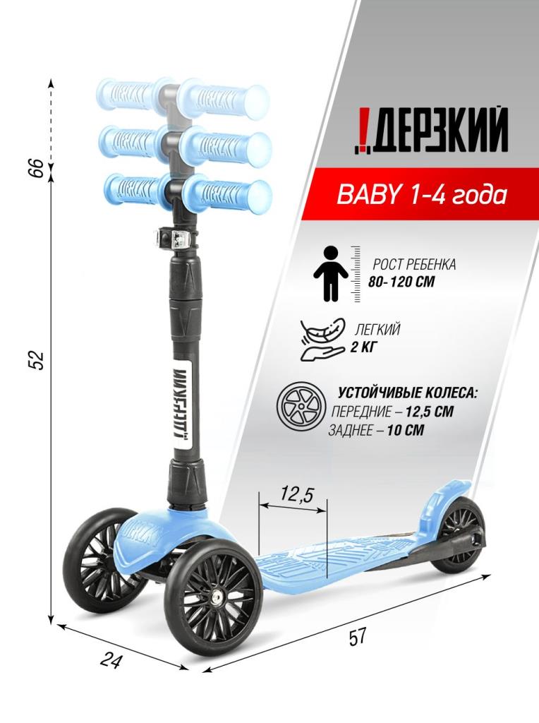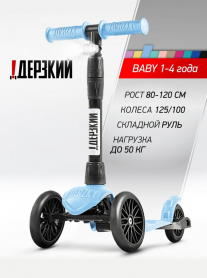 !Дерзкий Самокат детский трехколесный BABY Старт с фонариком 1-4 года, голубой