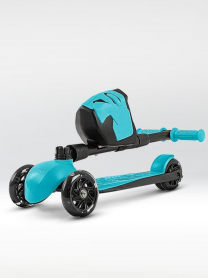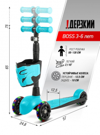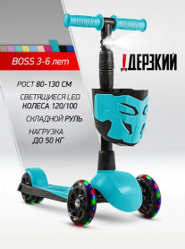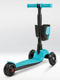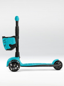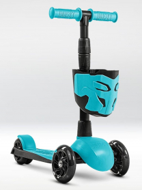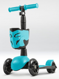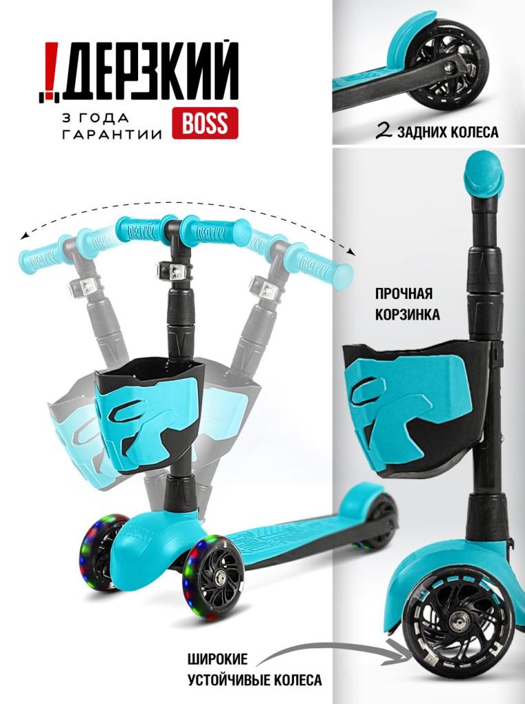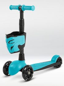 !Дерзкий Самокат трехколесный детский, светящиеся колеса с корзинкой и фонариком., бирюзовый