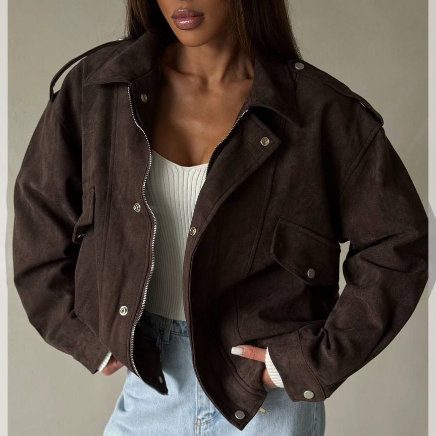 Стильный и удобный бомбер из эко замши?тот самый вариант, который легко сочетается и с джинсами, и с платьем. Универсальный must have для модного гардероба!