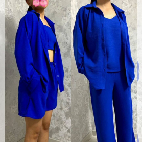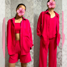И Посадка и пошив отличный??Супер удачная модель , под любой стиль ?Рубашка +Топ+брюки+ шорты! Качество материал Сингапур, очень приятный и лёгкий материал на Лето! Не мнётся , ткань сильно не тянется идёт в размер 42,44,-это S