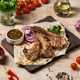 Мягкий и сочный шашлык из ягненка на косточке. Изысканный выбор для ценителей вкусного мяса.
