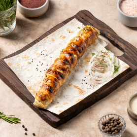 Состав: Люля-кебаб из курицы, тесто слоеное СОУС ПРИОБРЕТАЕТСЯ ОТДЕЛЬНО Вес: 180 гр.