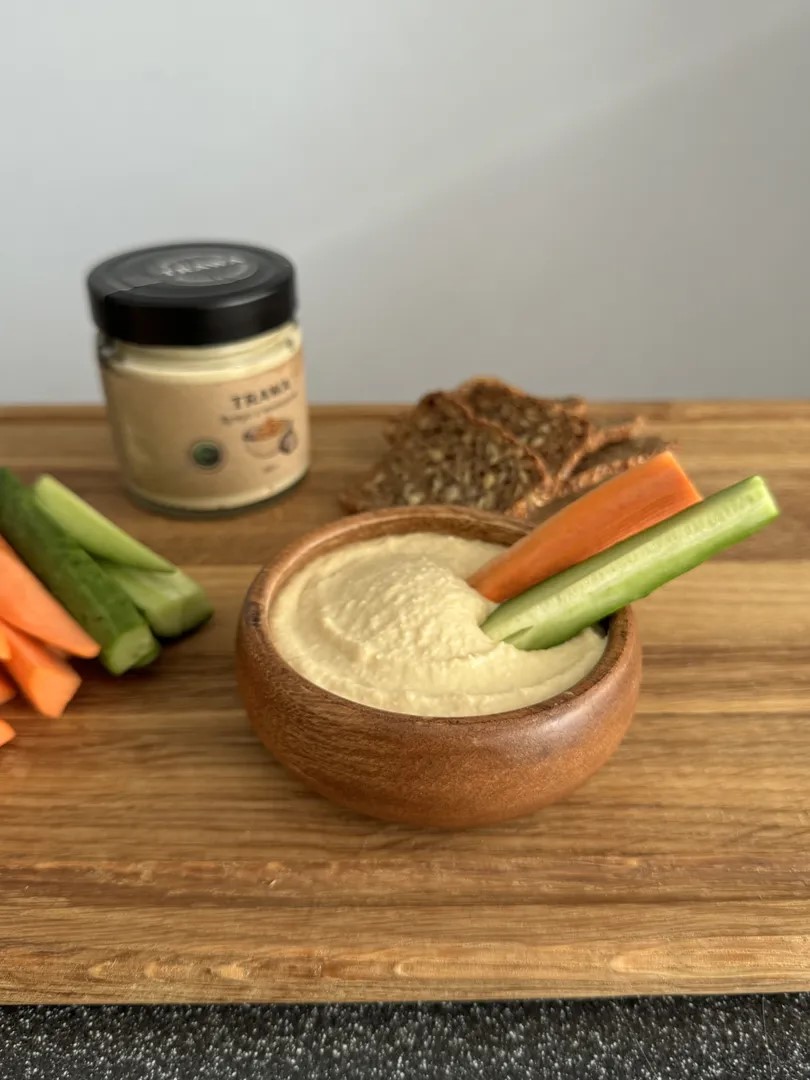 НОВИНКА! Мы взяли нут, тахини (пасту из молотого кунжута), свежий чеснок, добавили щепотку магии, кунжутное сыродавленное масло TRAWA, свежевыжатый лимонный сок, розовую гималайскую соль, смешали с девятью мешочками любви и сдобрили хорошей порцией заботы: так родился хумус TRAWA — нежный соус из лучших ингредиентов.